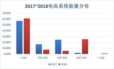 2017~2018電池系統(tǒng)能量密度分布