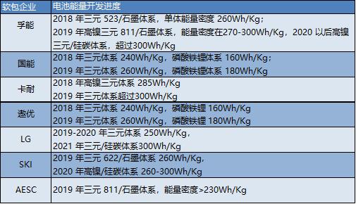 軟包代表企業(yè)能量密度開發(fā)進(jìn)展