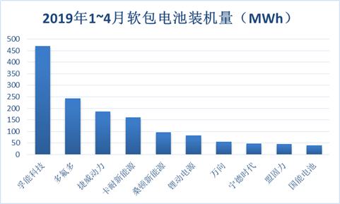 2019年1~4月軟包電池裝機(jī)量