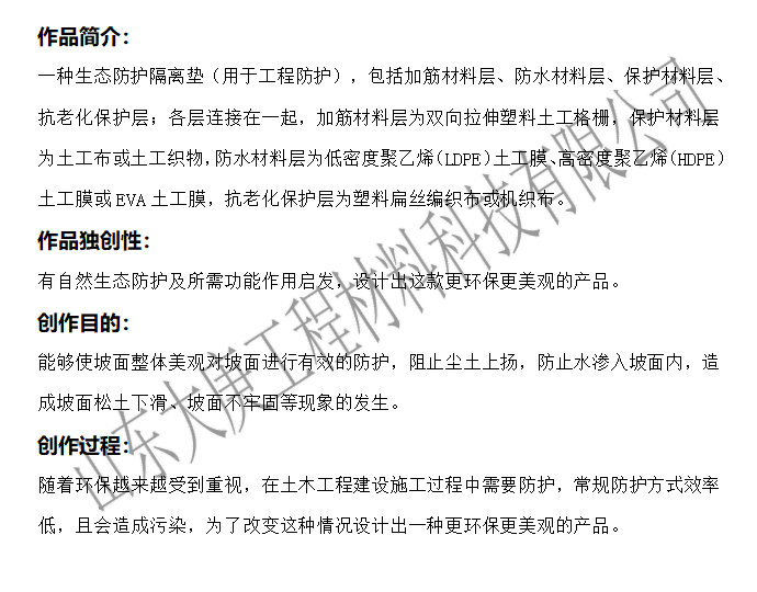 - 產(chǎn)品中心 玻纖格柵 滌綸格柵 玄武巖格柵(玄武巖抗裂網(wǎng)) 玻纖復(fù)合格柵 玻璃纖維網(wǎng)格布 玻璃纖維方格布 防裂貼 硅晶網(wǎng) 土工布 聚丙烯長絲針刺土工布 土工膜 土工格室 塑料雙向格柵 玻璃纖維短切氈 玻璃纖維紗線 塑料單向格柵 排水板 復(fù)合土工膜 塑料排水板 防水毯 石籠網(wǎng) 鋼塑格柵 鋼塑復(fù)合拉筋帶 復(fù)合排水網(wǎng) 三維植被網(wǎng) PP焊接格柵 HDPE雙壁波紋管 綠色裝配式生態(tài)防護(hù)隔離墊 玄武巖網(wǎng)格布